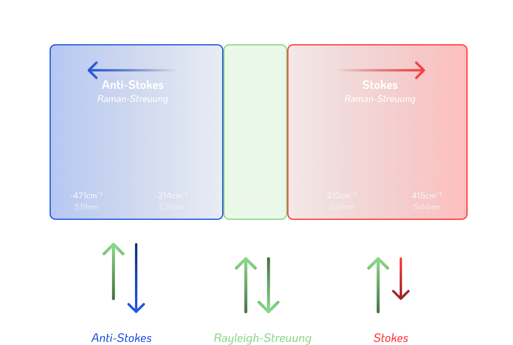 The spectrometer unit allows you to plot the receiving signal onto a 2-axis graph consisting of wavelength on the x-axis and a respective, arbitrary intensity value on the y-axis. The wavelength range of the device lies between 400-725nm, with its intended operating range at 400-580nm. This covers the visible spectrum quite nicely, but also isn’t necessarily important for our purpose, since most of the Raman-shift of our interest occurs between the excitation wavelength of 532nm and somewhere up to a maximum of 600nm in the Stokes region. Since this project uses a longpass filter, which lets wavelengths above – in our case 550nm – pass and block everything below, it becomes obvious that resolution is more important than a broad spectral range. Now it might seem evident that it likely lacks a portion of the Raman-signal, which lies between the laser’s wavelength of 532nm, and the filter cut-on at 550nm. But this isn’t as significant as it seems at first. Roughly speaking, at worst, this setup captures the first signals at a shift of 600cm^-1. Most molecular groups display characteristic activity and thus Raman-shift somewhere between 450-1650cm^-1 so it is still very capable at identifying compounds!
